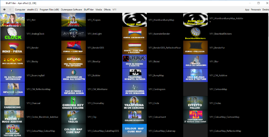 No parla Italiano, but I'll greatly appreciate the thumbnails for the V11 effects. Many thanks for your support.