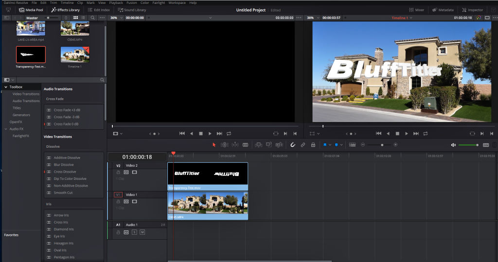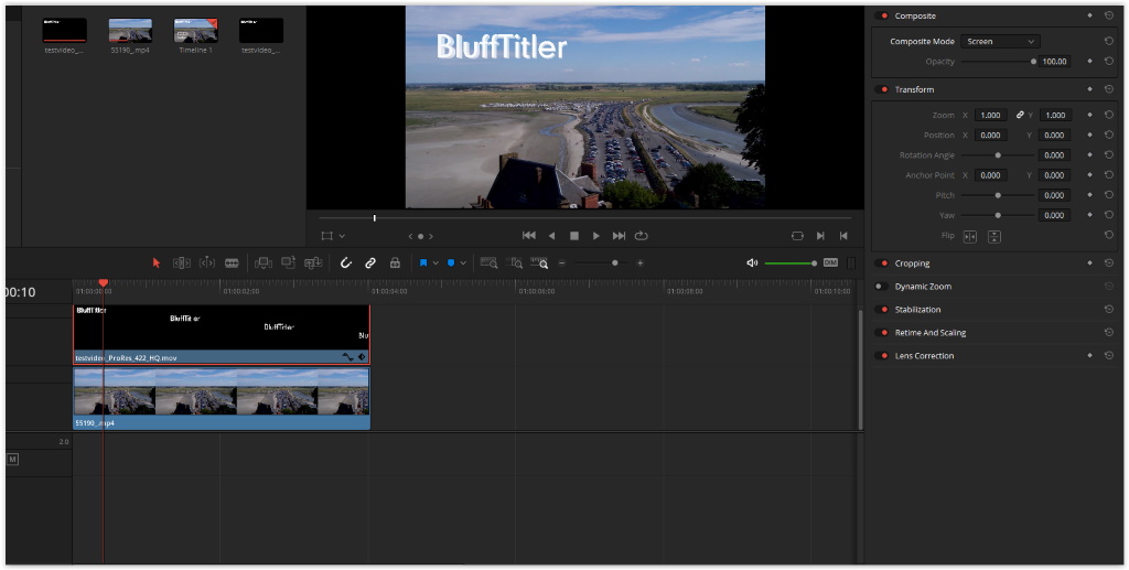 Your screen shot depicts exactly what I am trying to achieve, (and in Resolve too). I am a recent convert from Premiere, with which I was completely happy until the ‘cloud’ version and the demise of Windows 7 caused me to look elsewhere. Premiere could accept Blufftitler .avi files, complete with transparency.