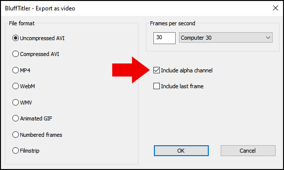 The video can be tested by loading it back into BluffTitler: choose LAYER > ADD LAYER > ADD VIDEO LAYER... Place a picture or plasma layer in the background.