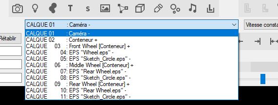 2- You take the show that I sent you, in which you will have integrated the new textures of the wheels (photos that you will have specially taken). You will remove all the layers other than that of the camera and the container of the running gear (see attached capture).