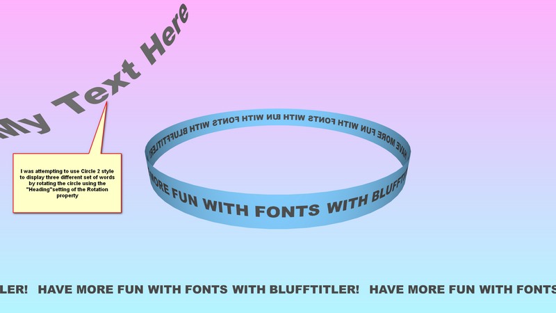 My second question is related to using text with "Circle 2" style applied. I initially thought about rotating the text around the circle using the Rotation's Heading property but tilting the circle text on the Pitch and Roll axis so that a portion of the circle is only viewable in the upper-left corner, but I found that when the Heading axis is animated, the circle "wobbles" around the axis due to the changes to Pitch and Roll. Is keeping the smooth circular motion of the text possible when tilting the text?