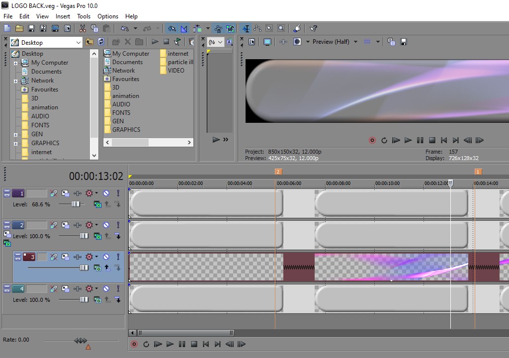 shot thanks michiel. I used Sony Vegas to composite and mask out the clips at the video levels i wanted and rendered to 850 x 150 pix sq and format multimedia AVI = 12 FPS 8 BIT so includes alpha channel. works well.