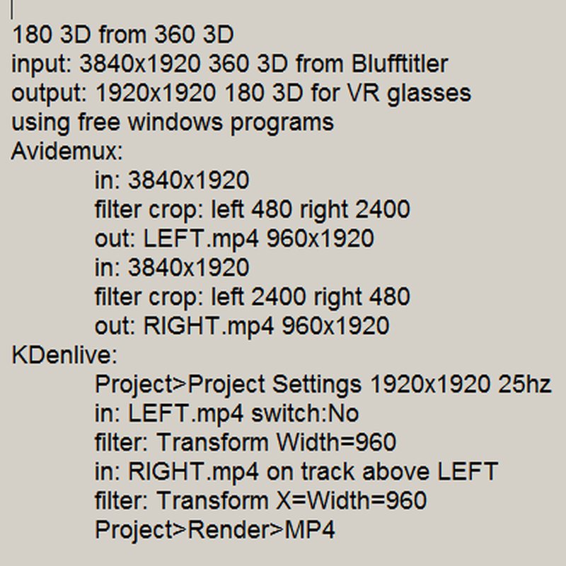 Added picture documents the method I use to extract a 180 3DVR from the 360 3DVR generated by Blufftitler.