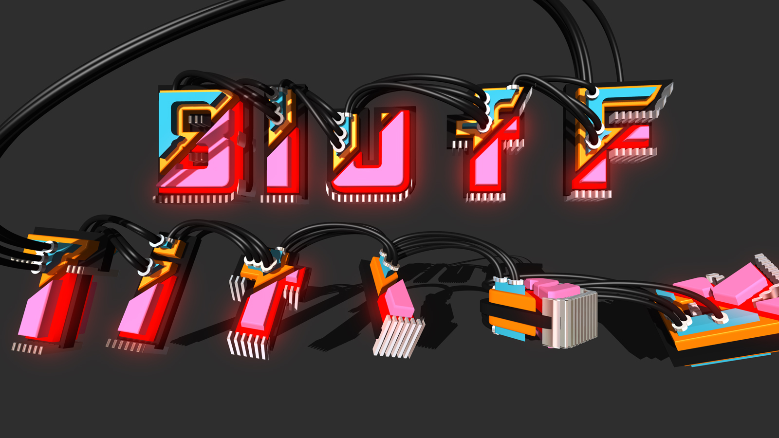 In this example the happy bright coloured letters are connected by a shiny black sketch layer. The sketch layer is updated automatically when you change the spacing, character rotation and other text layer props.