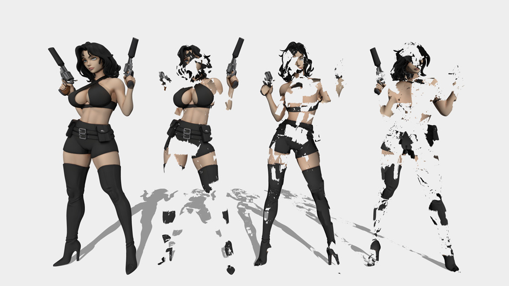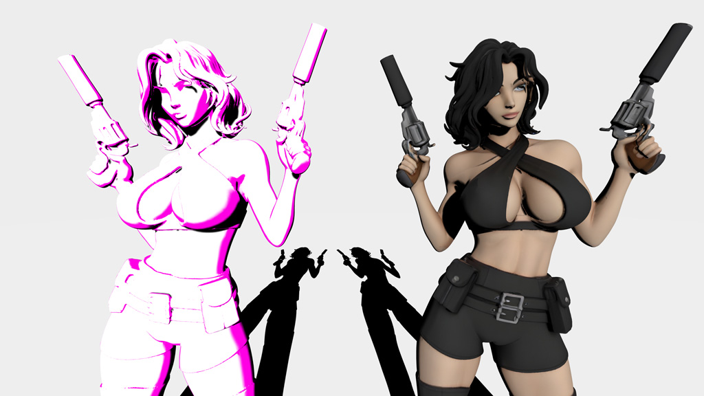 I like the switch from cartoony pink/black/white to realistic lighting. How did you do that?