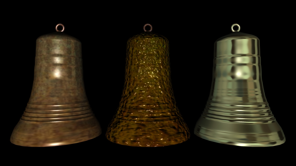 3. I'm currently using the cube map effect but I think the problem is with the image I'm using, or maybes it's because the bell is made in segments, I have tried to get a more uniformed shiny chrome finish but as you can see it's just not quite right.