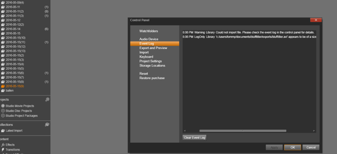 I can't open a file that has been exported to pinnacle: Appears to be of a size or type that is not supported