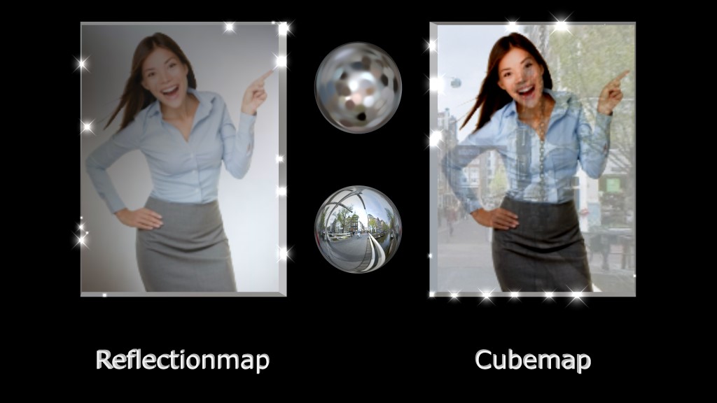 The Reflectionmap and cubemap are effects to "simulate a reflection" to make object look more real.