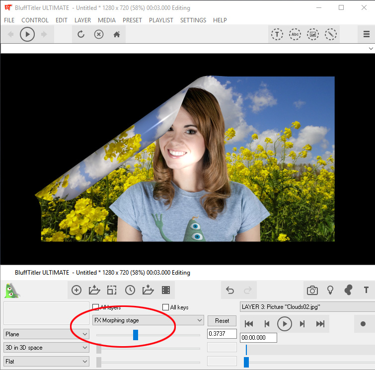 For example, in this screenshot I use the Picture\Plane2Roll effect applied to a picture layer. As you can see it has an FX Morphing stage property!