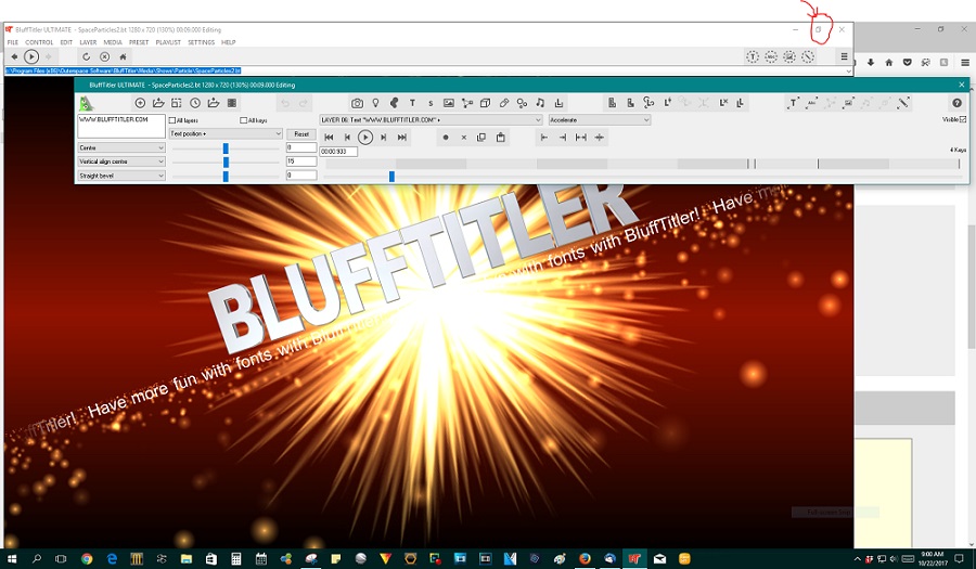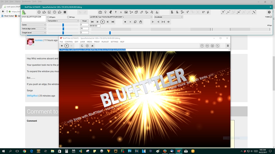 SMSgtRod, When I try and make BT full screen size it gets larger but goes directly to the upper left corner of my screen. If I try and drag it over to center it, the preview window immediately resizes down to a smaller window in the center of my screen. I suspect this due to the aspect ration of my 14"x24" wide screen monitor.